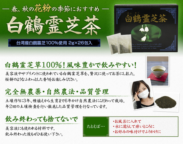 - 春・秋の花粉の時期に!白鶴霊芝茶(ハッカクレイシチャ) 52g(2g × 26包入り)