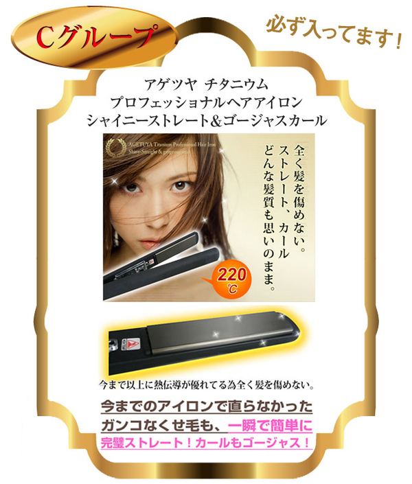 なんと今回はアゲツヤ ヘアアイロンも必ず入っています★